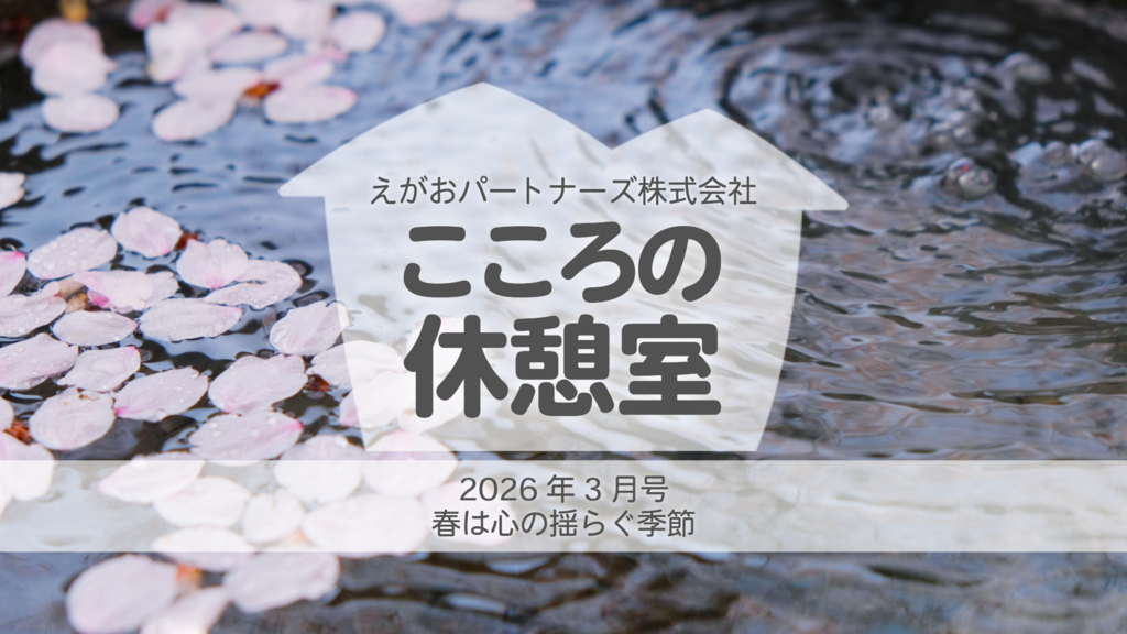 こんにちは。皆さんの心身の健康をサポートする「えがおパートナーズ」です。